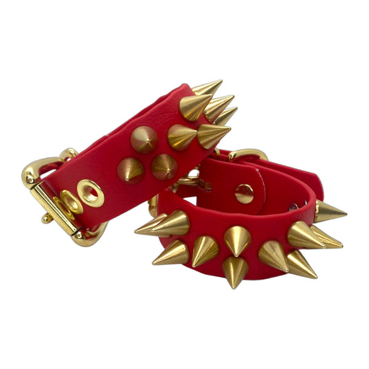 Vegan Leather Spiked Wrist Cuffs / Bracelet with Brass Hardware