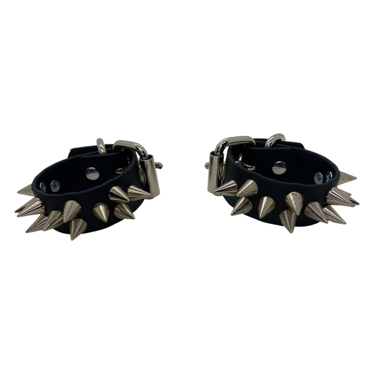 Vegan Leather Spiked Wrist Cuffs / Bracelet with Nickel Hardware
